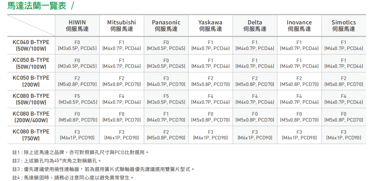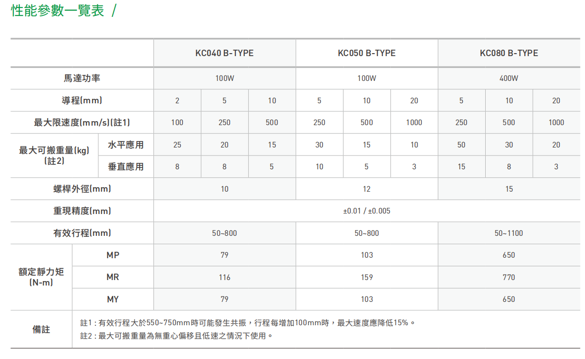 注2 :比较基础为近似规格之KC A-TYPE,依不同规格、负荷能力B-TYPE提升约10~30%。